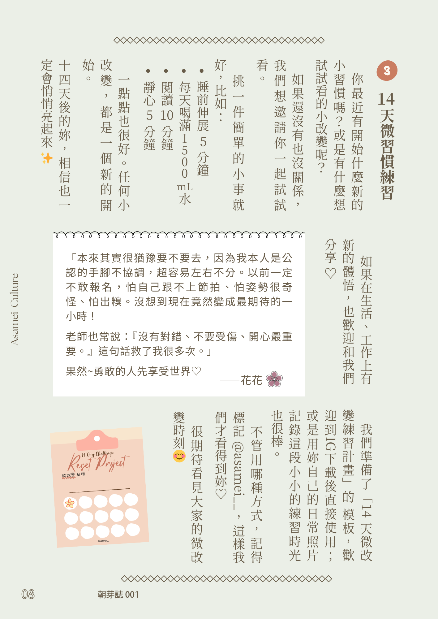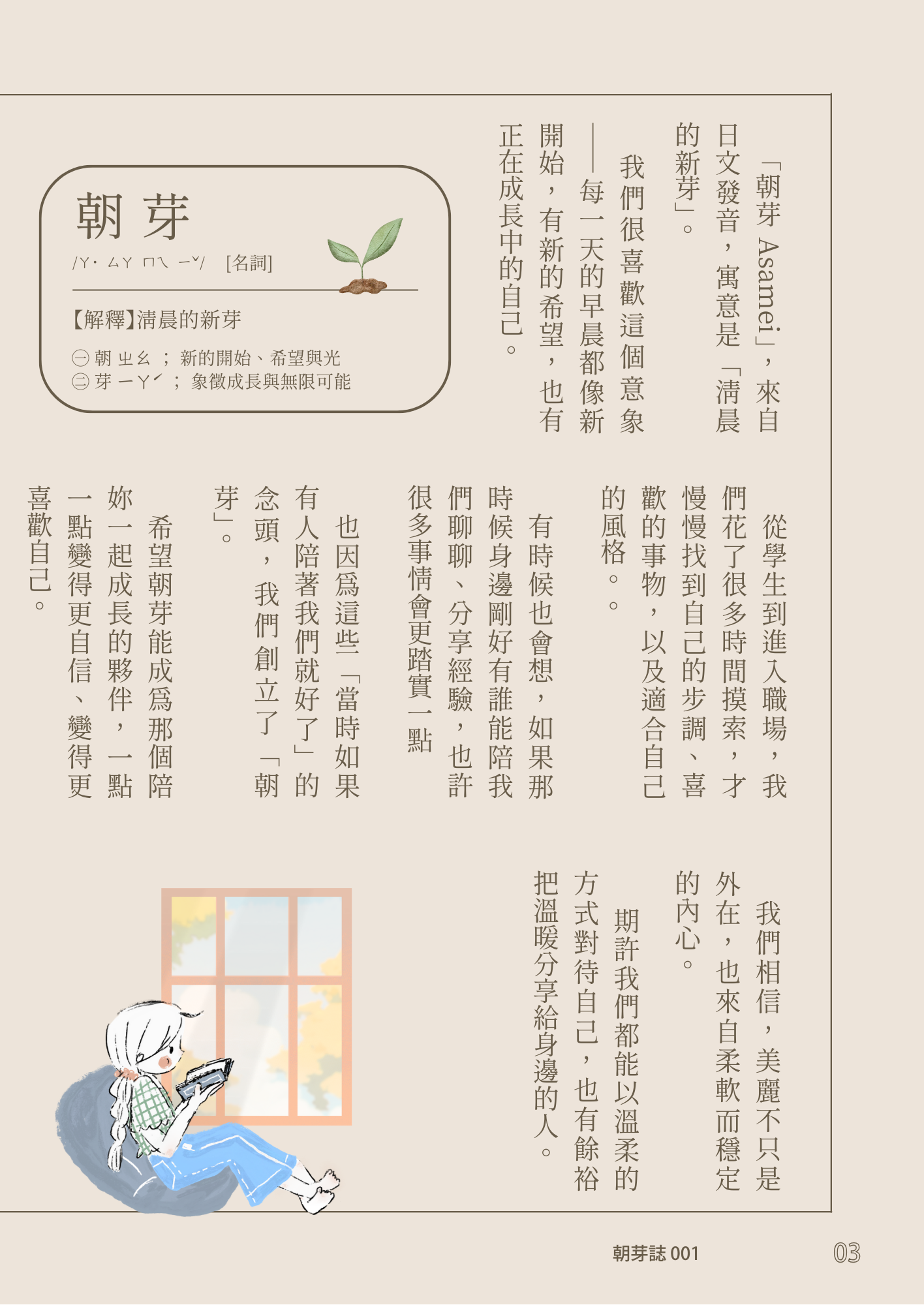 希望這本朝芽誌也能陪伴妳,並帶給妳一些小小的靈感與愉快時刻。