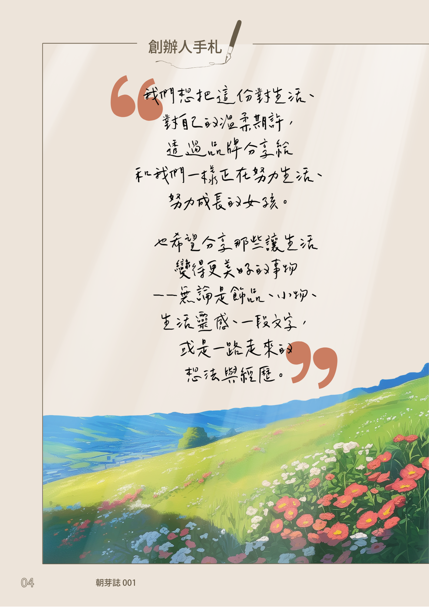 所以我們想做一份屬於自己的 —— 也屬於妳的 —— 朝芽誌。